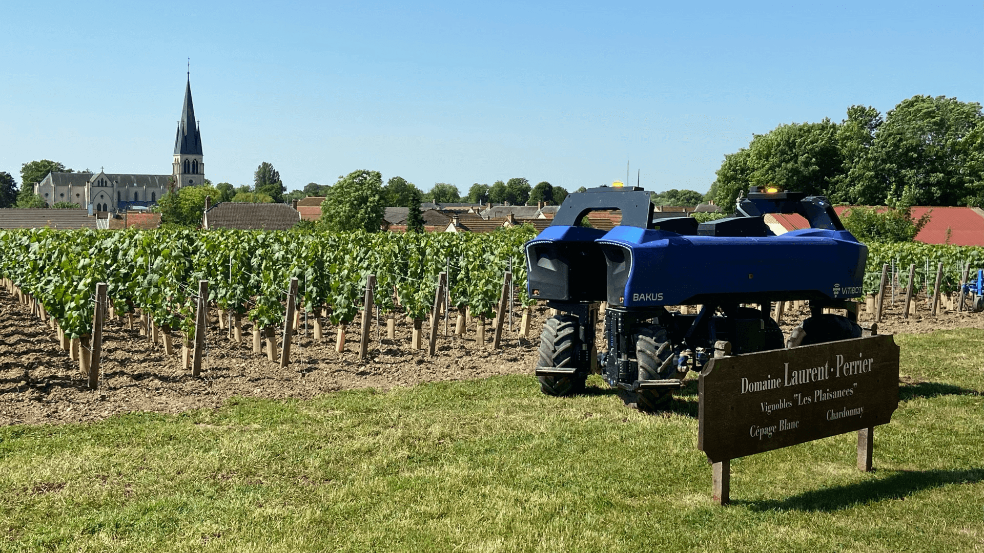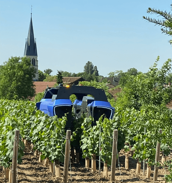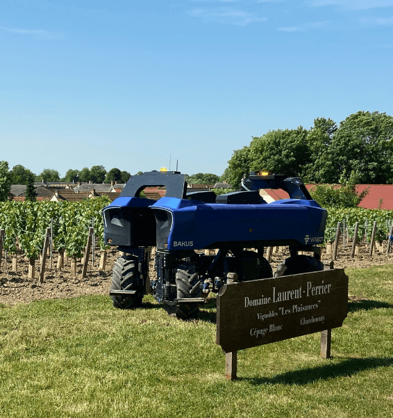 Über GPS verbunden arbeitet der Roboter nach der Vermessung der Parzellen selbstständig. Der Vitibot ermöglicht es dem Champagnerhaus Laurent-Perrier teilweise auf die neuen Herausforderungen des nachhaltigen Weinbaus und der Reduzierung des Kohlenstoffausstoßes zu reagieren.
