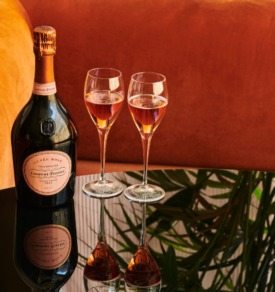 either a glass of Champagne Laurent Perrier Cuvée Rosé