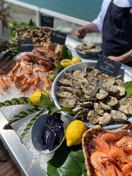 Elue plus belle terrasse, La Réserve Péché Iodé est niché dans une réserve naturelle de l’estuaire de l’Orne en Normandie. La Réserve Péché Iodé présente une carte de saison