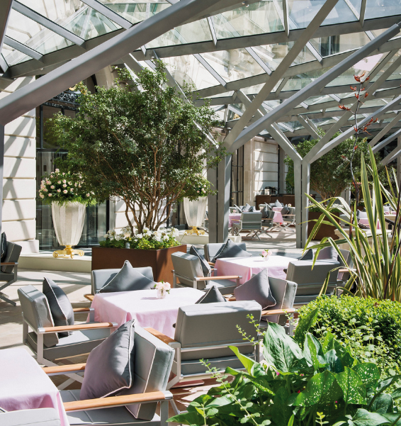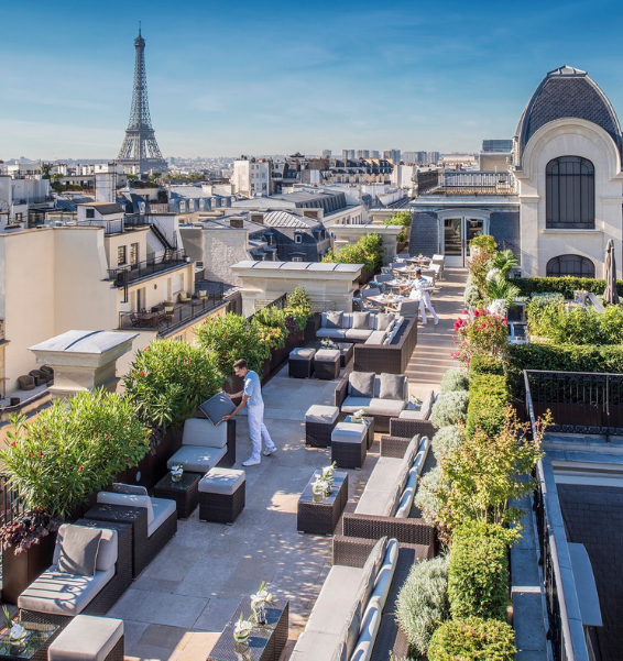 Laurent-Perrier Cuvée Rosé sur les terrasses de l’hôtel The Peninsula Paris