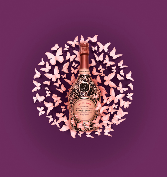 Aujourd’hui encore, plus de 50 ans après son lancement, Laurent-Perrier Cuvée Rosé continue de nous étonner avec ses notes envoûtantes et ses arômes intenses de fruits rouges. Un nouvel écrin, rituel de service unique dans le monde du champagne, se réinvente pour la 4ème année consécutive. Après la robe « Maillage », la robe « Constellation » et la robe « Zèbre », Laurent-Perrier propose la robe « Papillons ». Réutilisable grâce à son fermoir, elle symbolise pour la Maison Laurent-Perrier le respect de la nature et de l’environnement.